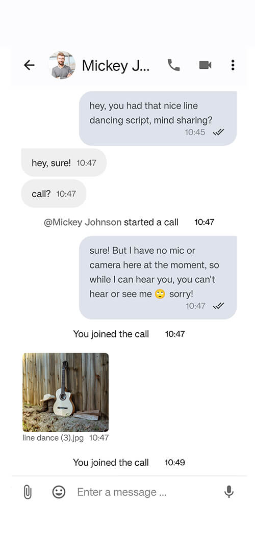 - Integrated chat and secure audio-video calls