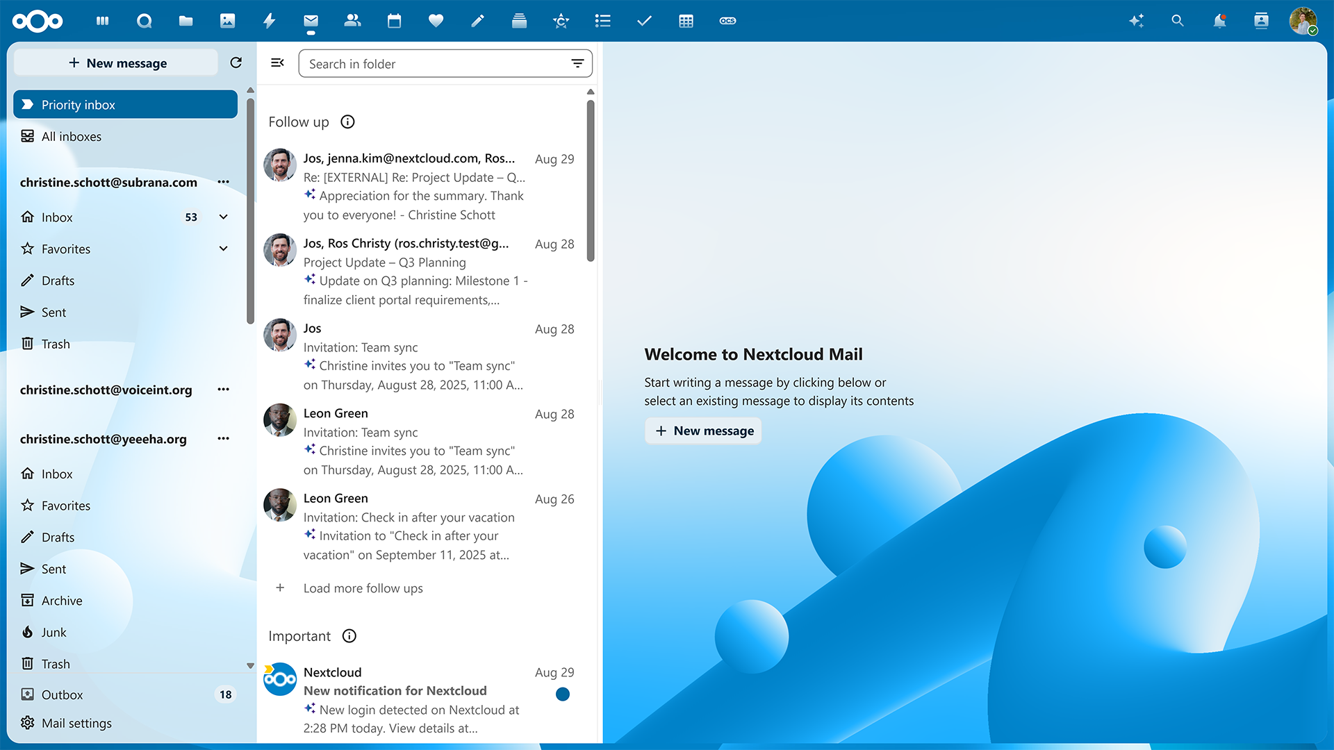 With a couple of smart tricks in Nextcloud Mail, you can now keep control of your messages easier than ever. Quick Actions lets you handle common tasks in one go: mark a mail as read, move it into a project folder, or forward the email to a specified address.