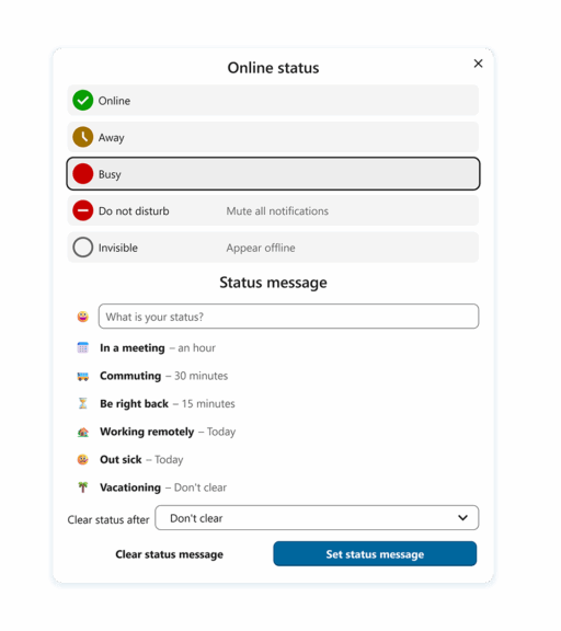 Talking about busy, there’s now the new “🔴 Busy” status to communicate your availability, in addition to other statuses that also got new easily recognizable icons. “🔴 Busy” activates automatically during calls and scheduled meetings.